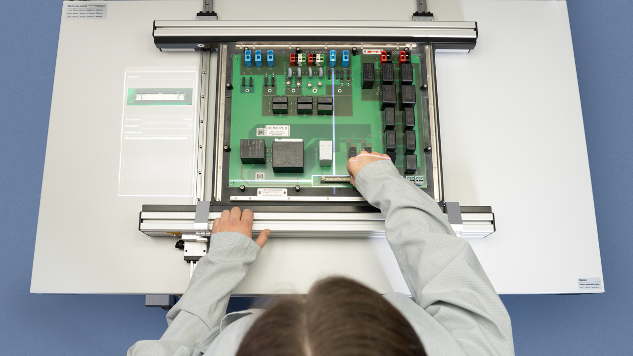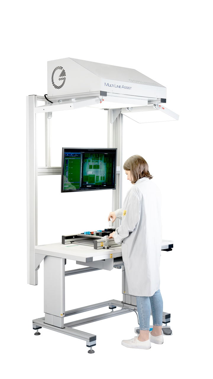 Multi Line Assist može se koristiti i na ručnoj THT montaži i u automatiziranim proizvodnim linijama. Sustav projicira upute za sastavljanje izravno u vidno polje operatera, čime se značajno skraćuje vrijeme montaže. Integrirani AOI modul provjerava postavljanje komponenti nakon svakog koraka ili na kraju procesa montaže te pouzdano otkriva pogreške poput neispravne polariteta, nedostajućih komponenti ili odstupanja u boji i označavanju. Svi se rezultati dokumentiraju, mogu se statistički analizirati i proslijediti MES sustavima.